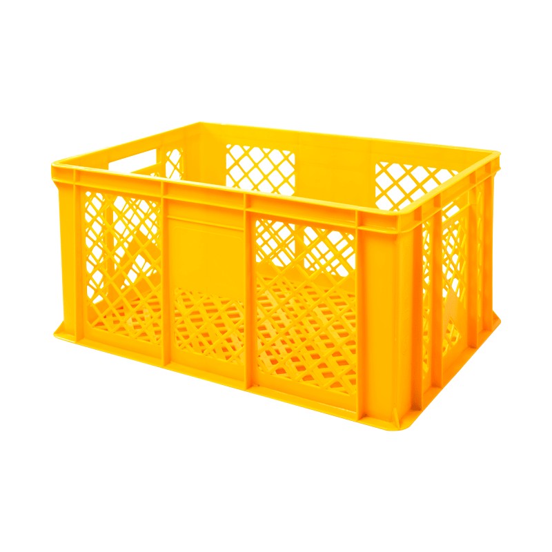 Skrzynki plastikowe kosze na pieczywo, chleb, bułki H-300 zółte . Skrzynka ażurowa pozwala na utrzymanie świeżości pieczywa wyrobów cukierniczych zarówno w piekarni jak i w sklepie.